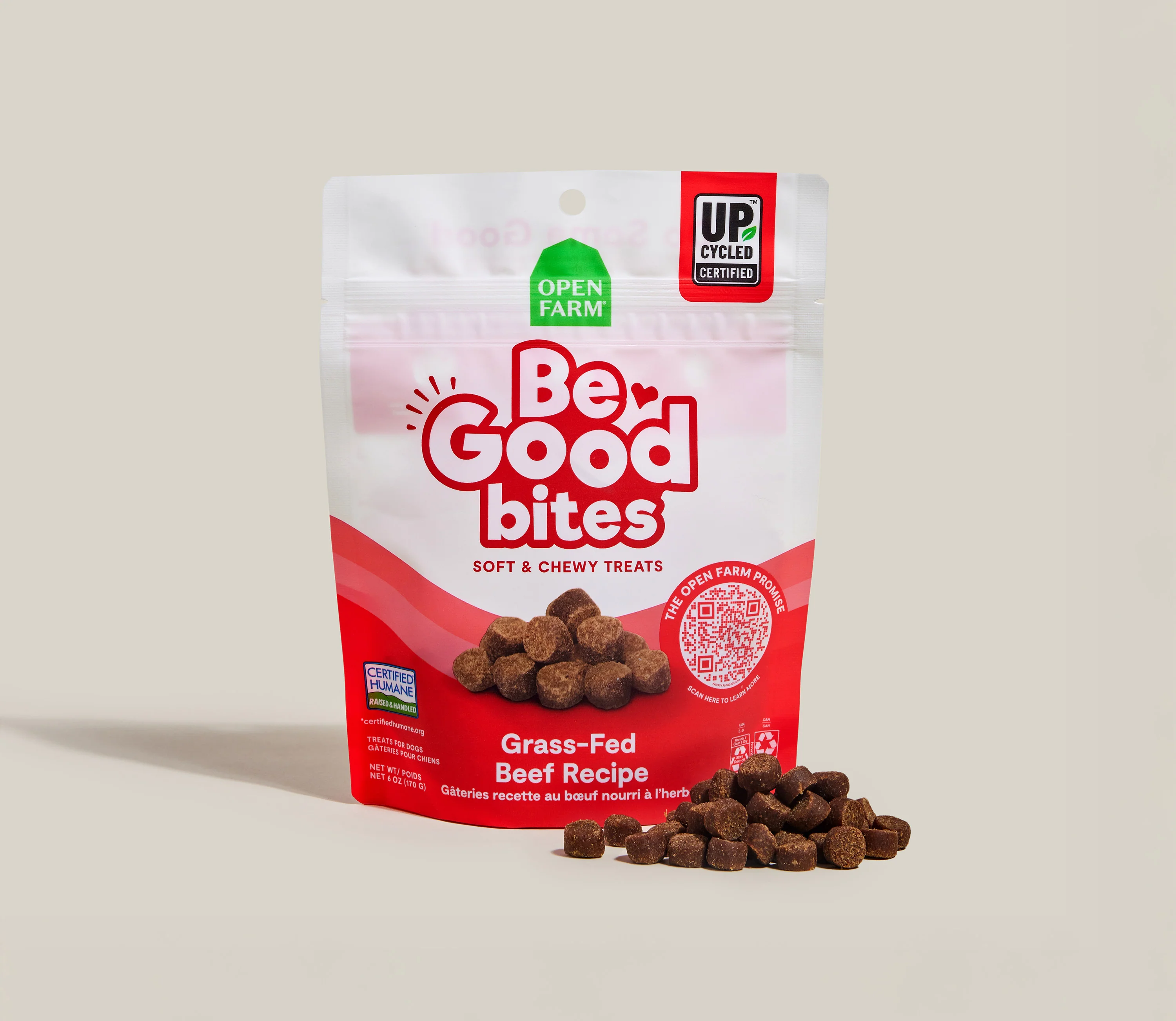 These bite-sized treats are made with humanely raised grass-fed beef as the first ingredient, combined with high-quality non-GMO fruits & grains. With a soft and chewy texture and 30% upcycled ingredients, Be Good Bites are great for your pup and the planet too! Approximately 180 Treats per bag.