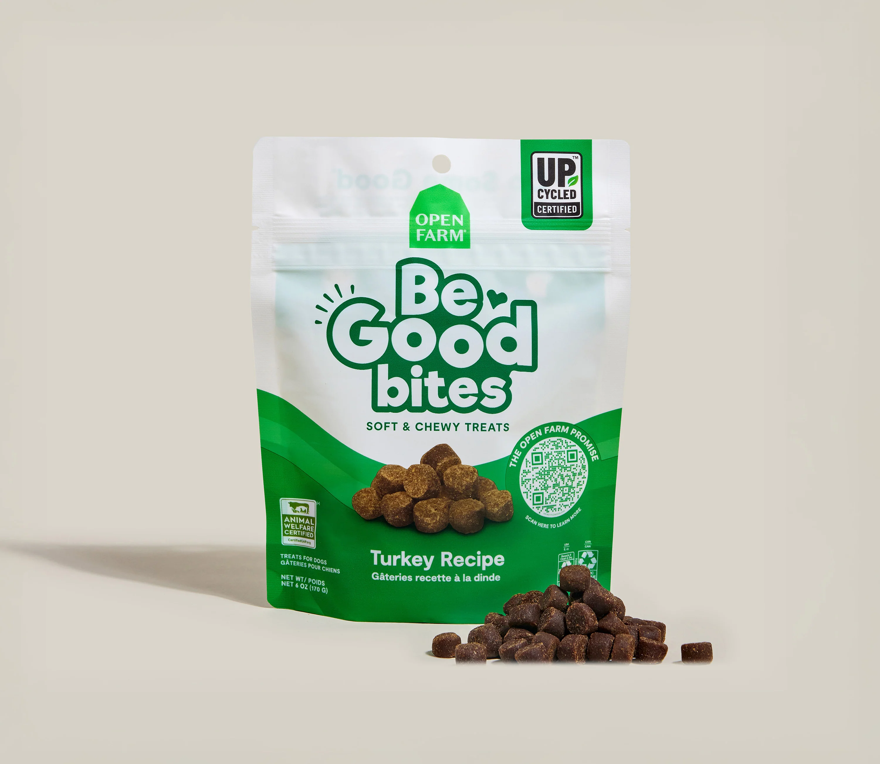 These bite-sized treats are made with humanely raised turkey as the first ingredient, combined with high-quality non-GMO fruits & grains. With a soft and chewy texture and 30% upcycled ingredients, Be Good Bites are great for your pup and the planet too! Approximately 180 Treats per bag.
