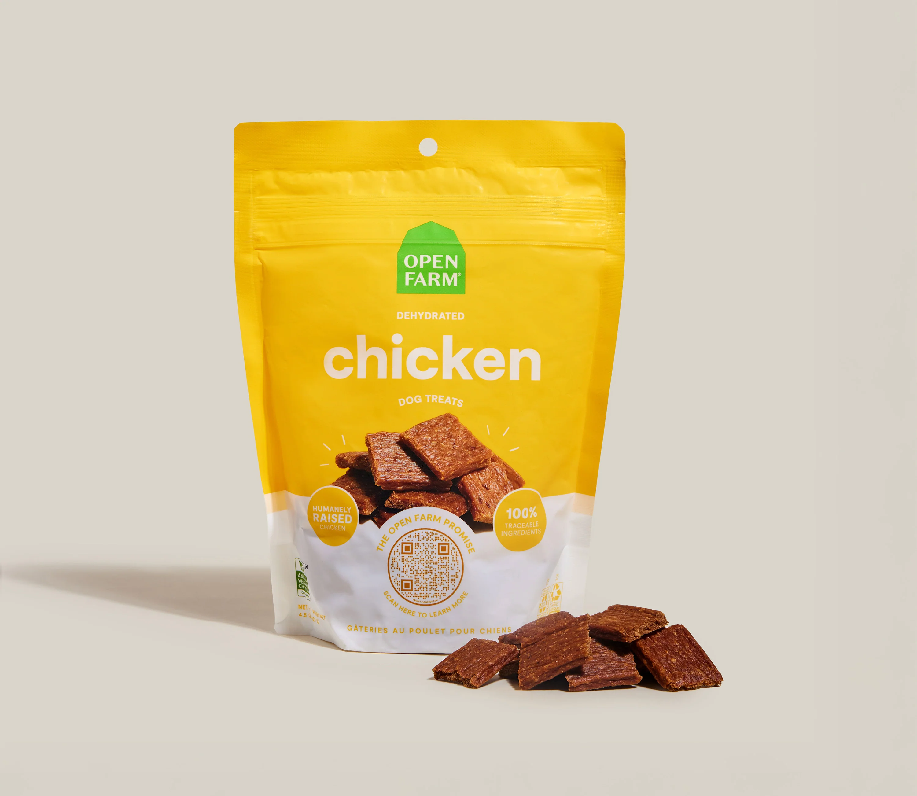 These munchable treats are packed with protein, thanks to humanely raised chicken that’s lightly cooked then dehydrated at low temperatures to retain nutrients and maximize flavor.